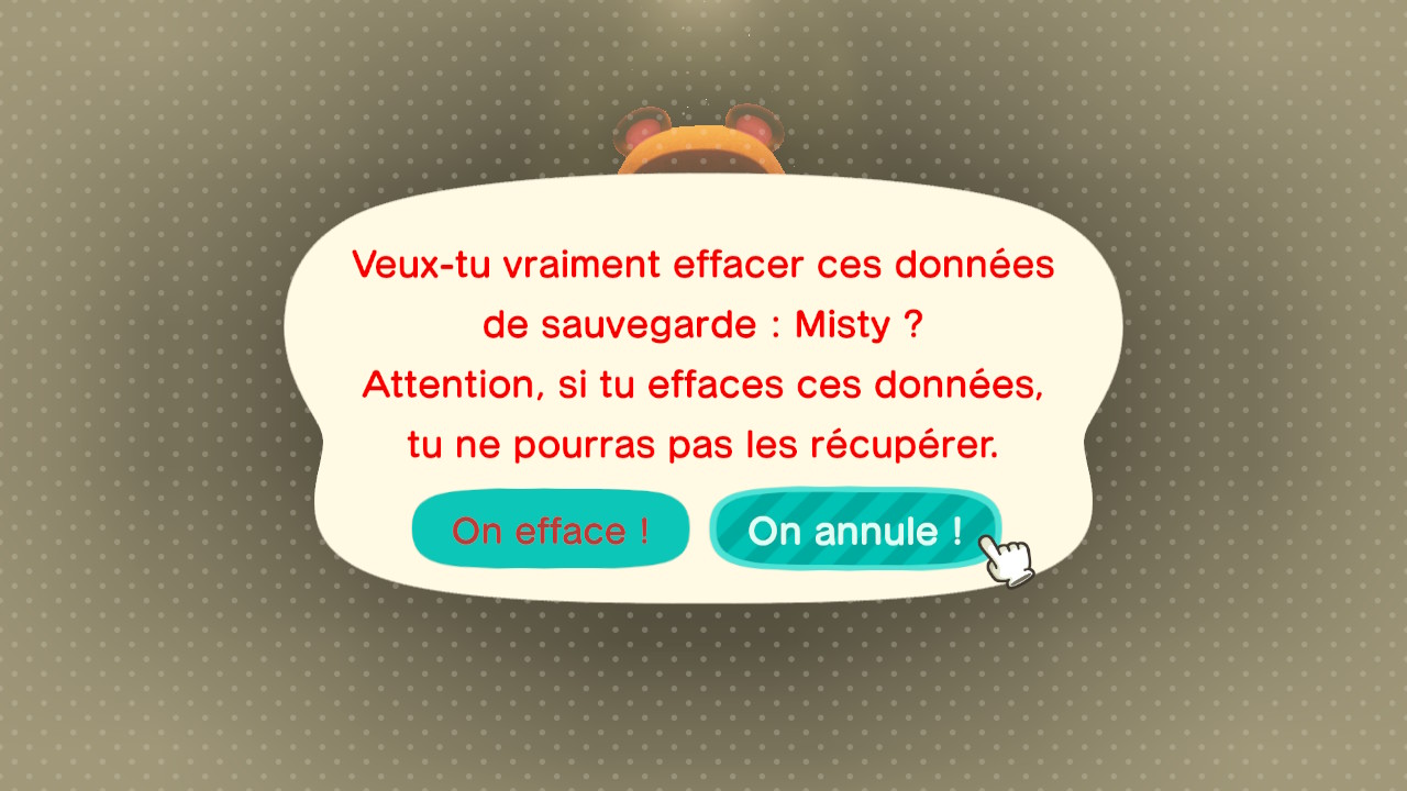 - À la question posée par Tom Nook, répondez « Supprimer un joueur » ;