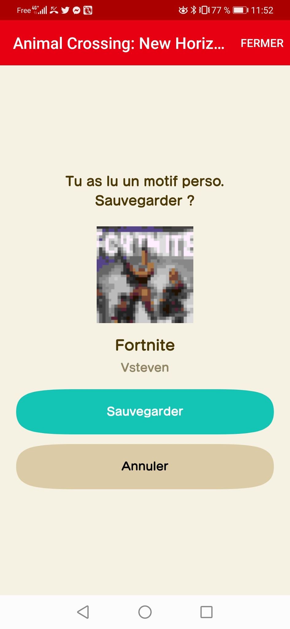 - Une fois votre design trouvé, vous n'avez plus qu'à l'enregistrer sur l'application Motifs Persos de votre Nook Phone !