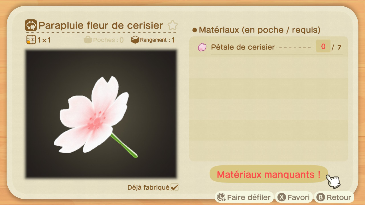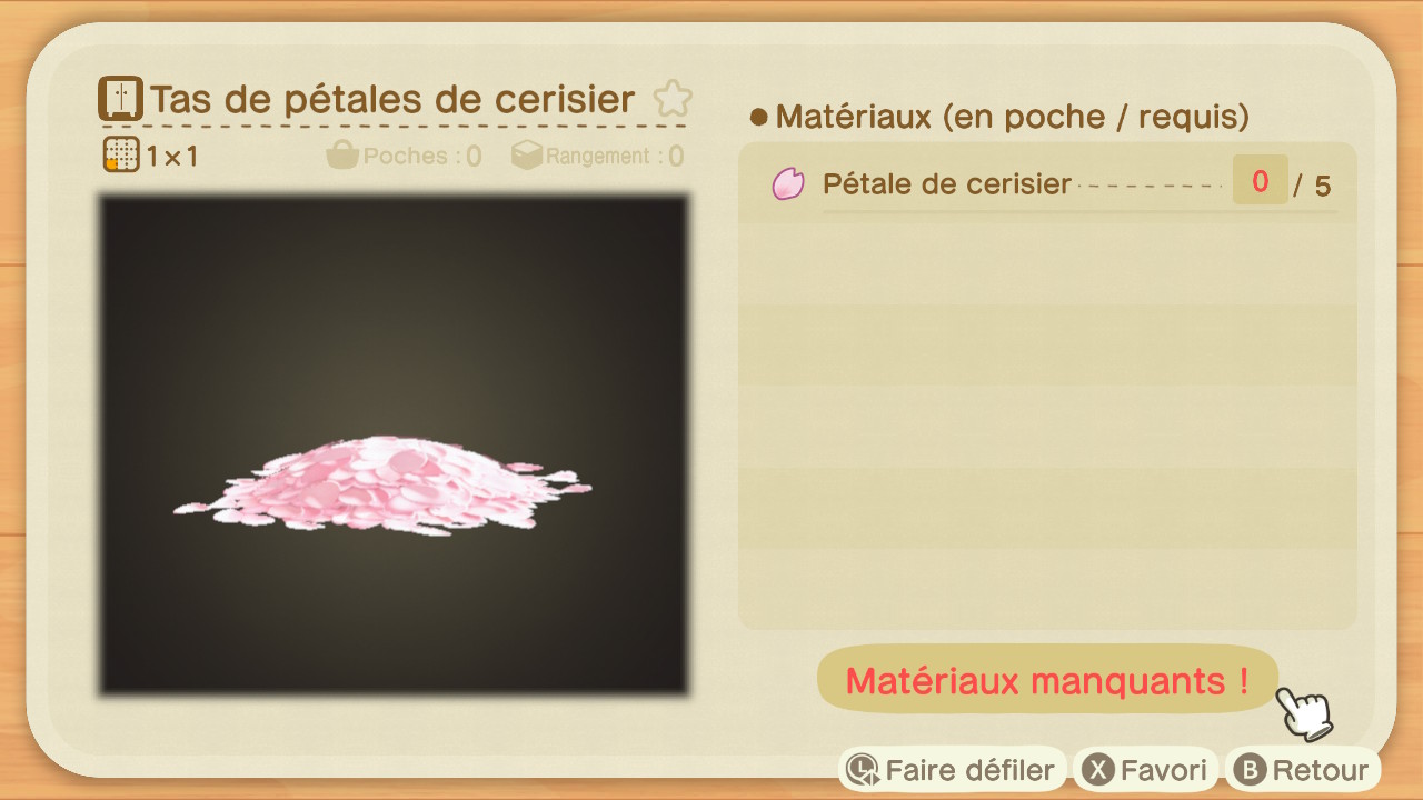 La saison des cerisiers en fleur a débuté dès le 1er avril sur Animal Crossing, et vous avez peut-être déjà pu avoir de nombreux plans de bricolage sur ce thème ! Ceux-ci s'obtiennent généralement dans des ballons, mais également dans des bouteilles à la mer. Vous pouvez ensuite vous en servir pour fabriquer des meubles, mais uniquement si vous disposez du matériau principal : les pétales de cerisier. Ceux-ci s'attrappent à l'aide d'un filet, et vous en verrez régulièrement voler sur votre île.