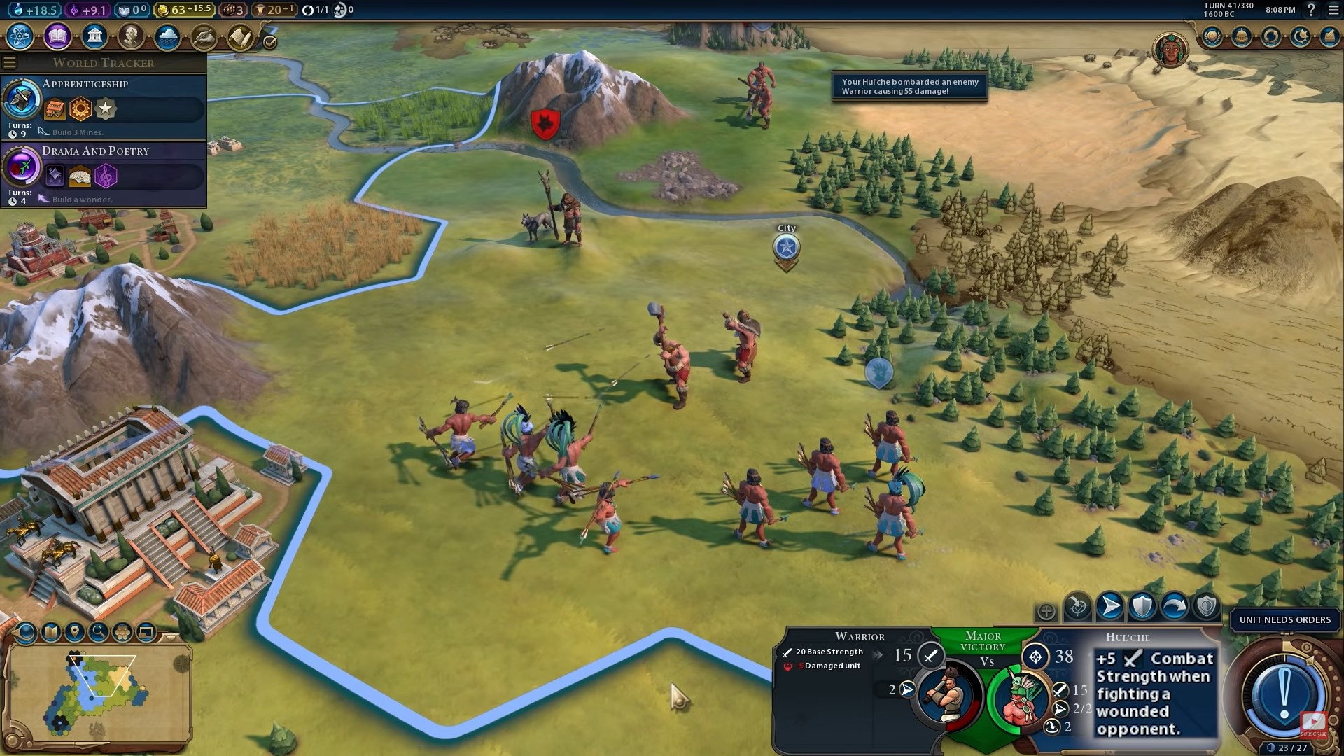 Si vous arrivez à avoir plusieurs Hul'Che rapidement, et avec un général illustre, vous pourrez également attaquer avec, bien qu'ils aient des malus d'attaque (-17) contre les villes et risquent de perdre le +5 de Ix Mutal Ahaw.
