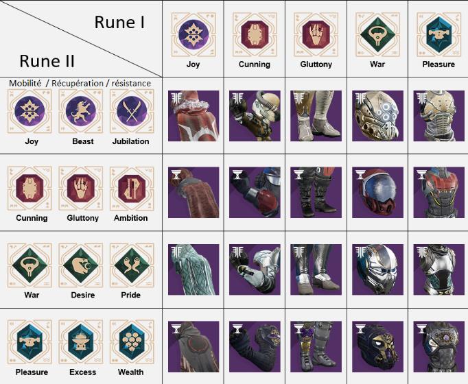 Associations des runes pour les pièces d'armure Chasseur (crédits : Windzer408)