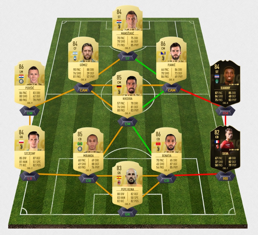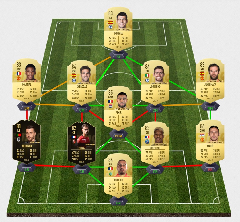 Notre exemple de solution pour le défi Equipe notée 84 (via le créateur Futhead)