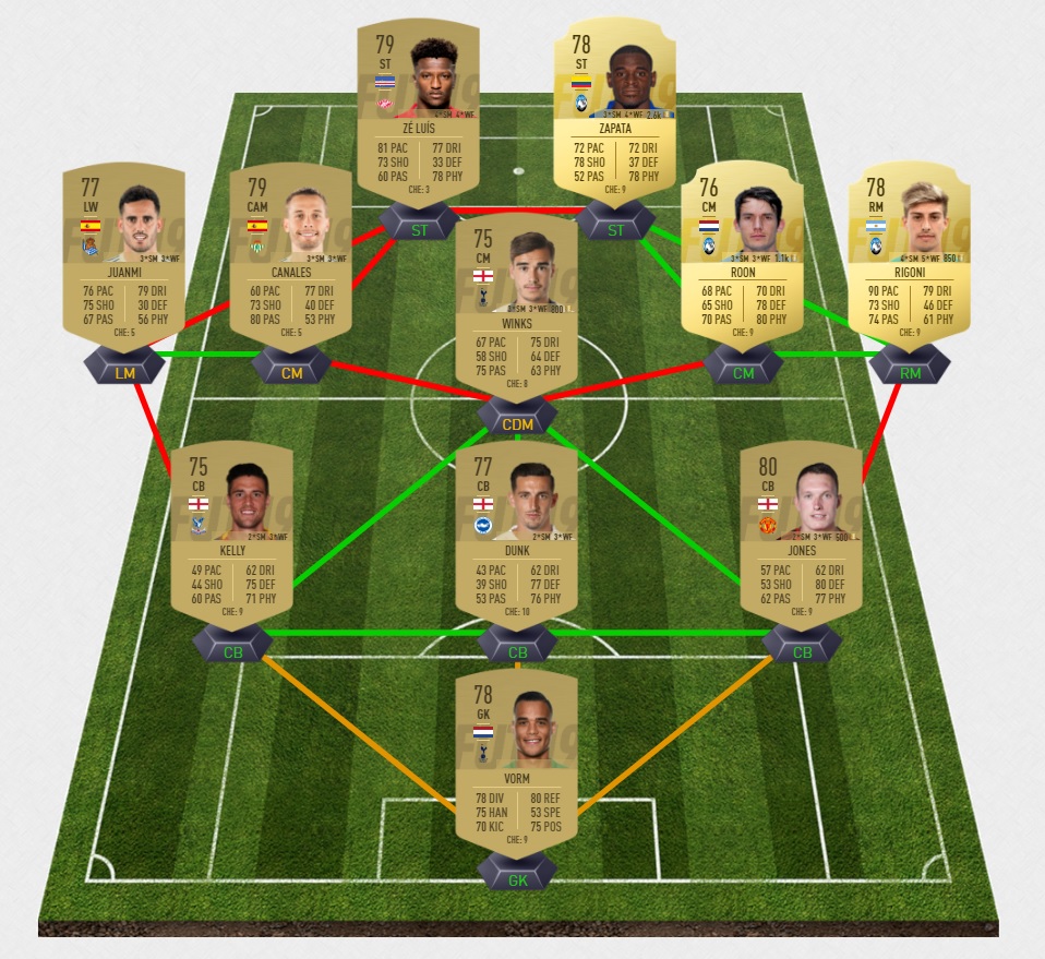 A noter que ces formations sont des exemples de solutions et qu’il est tout à fait possible de réussir le défi avec une toute autre équipe. A noter également que le coût des cartes est à prendre en compte et qu’avec le temps, celui-ci pourrait augmenter ou baisser, rendant le onze plus ou moins optimal.