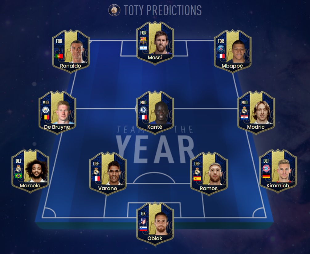 La TOTY est une célébration de la saison écoulée afin de mettre en avant les joueurs ayant réussi les meilleures performances durant l’année 2018. La Coupe du monde et la Champions Leagues auront donc un impact important sur cette sélection, tout comme les succès au sein des championnats majeurs.