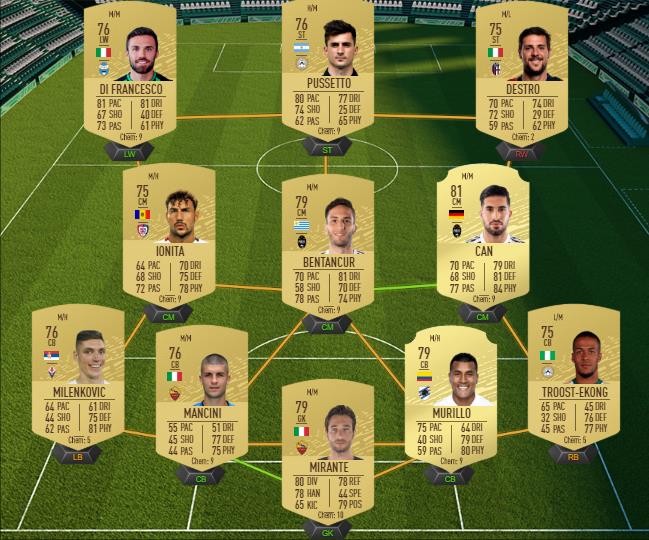 Notre exemple de solution pour le défi Serie A TIM (via le créateur Futbin)