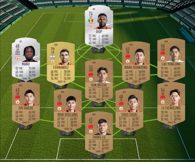 Notre exemple de solution pour le défi Shandong Luneng (via le créateur Futbin)