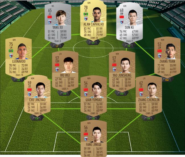 Notre exemple de solution pour le défi Henan Jianye (via le créateur Futbin)