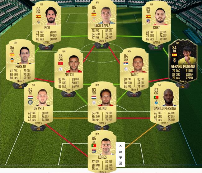 Notre exemple de solution pour le défi Équipe 85 (via le créateur Futbin)