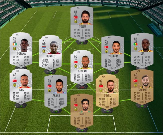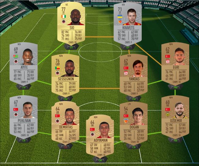 Notre exemple de solution pour le défi Yeni Malatyaspor (via le créateur Futbin)