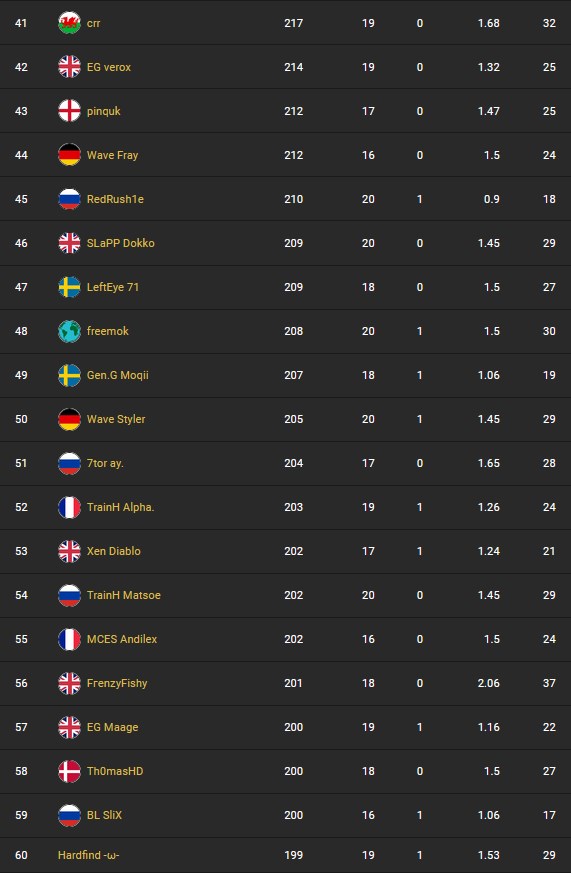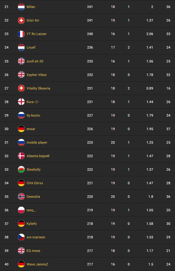 | Robabz | Skite | Skribbb | Slovay | Snayzy | St4lord | Swiight | TheVic |