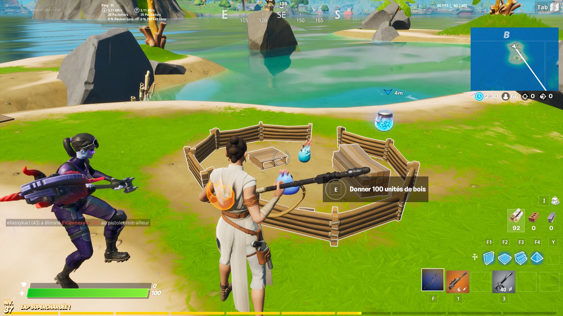 Une fois que vous êtes sur l'île, vous allez devoir détruire des arbres ou des objets en bois. Une fois que vous avez atteint 100 de bois, vous pouvez passer à l'étape suivante, c'est-à-dire, donner les 100 de bois aux petits personnages dans leur enclos.