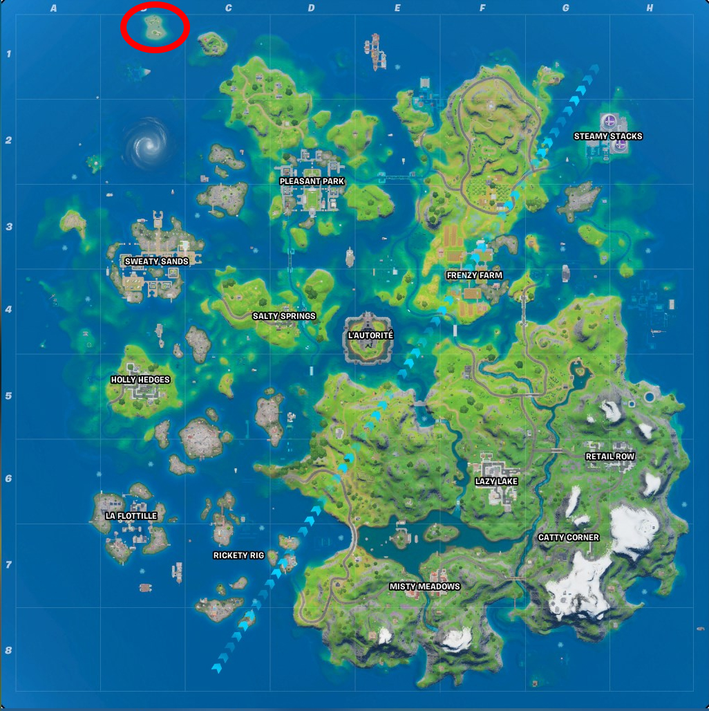 Emplacement de l'île pour réaliser le défi Fortnite