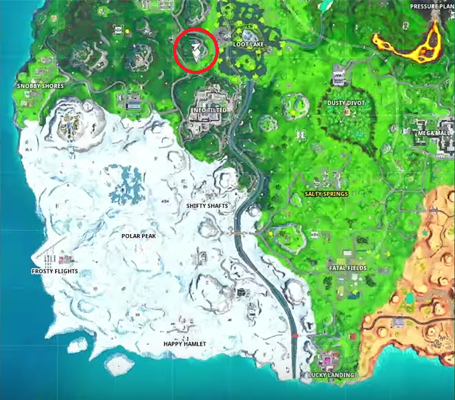 La puce de décryptage #23 se trouve à entre trois lieux de Fortnite : un camping car, une station service et une emprunte monstrueuse. Pour la trouver, vous allez devoir aller à l'ouest de Loot Lake et au nord de Neo Tilted, sur une colline.