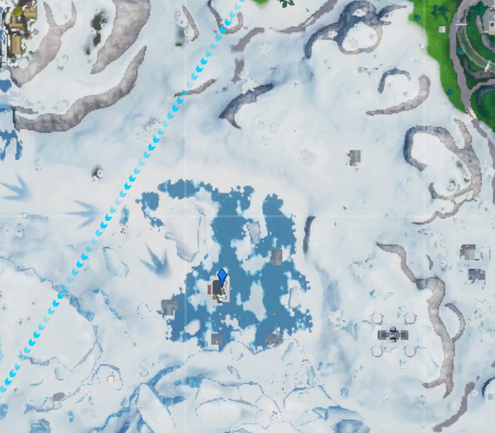 Fortnite : Puce 94 Décryptage, Utiliser la pioche Faux écarlate pour détruire un canoë bleu sous un lac gelé, Défi
