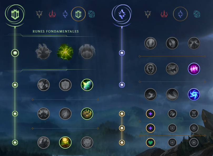 Les changements des runes tanks du patch 8.23 s’avèrent efficaces sur Galio: la nouvelle rune Coup de bouclier fonctionne avec le passif de son Z ce qui lui permet de bénéficier d’un léger bonus de résistances magique et d’armures. La rune Surcroissance est également très efficace sur le colosse car il possède un excellent wave clear et débloque relativement vite l’augmentation de PV.