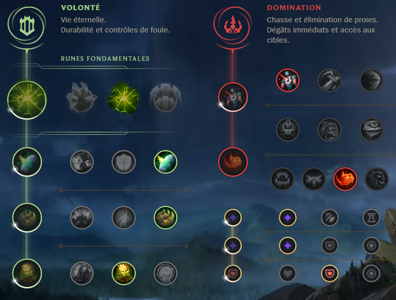 Le Morellonomicon est une option utile pour augmenter vos dégâts sur les cibles sans résistance magique ainsi que pour affaiblir les soins adverses. Le Sablier de Zhonya est davantage une option défensive si vous vous faitez tuer trop facilement, tandis que la Rédemption est un objet qui cherche davantage à aider votre équipe en les maintenant en vie, et en leur donnant le buff de l'Encensoir Ardent. |