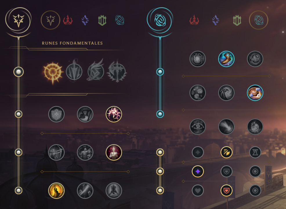 La Rancune de Serylda sont excellents contre l'armure. Si les adversaires ont beaucoup de soin, le Rappel Mortel est très puissant. Défensivement, la Soif de sang, le Cimeterre mercuriel ou encore l'Ange gardien peuvent vous sortir de situations épineuses. Le Manteau de la nuit permet d'encaisser une compétence sans en subir les effets.