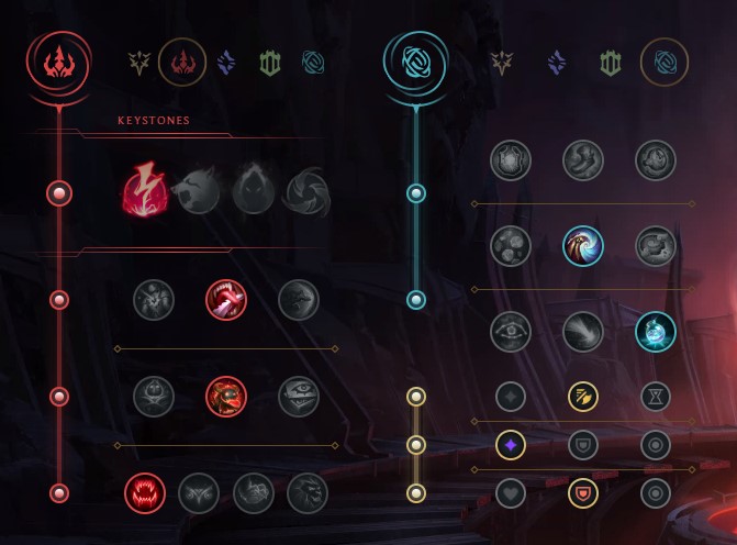 le Sablier de Zhonya vous apportera de la survivabilité contre des assassins ou du burst adverse, vous permettant de temporiser vos CD. Si vous êtes contre beaucoup de soin, un Morellonomicon s'impose. Enfin, le Bâton du vide et / ou la Coiffe de Rabadon sont des options très pertinents en fin de partie pour booster vos dégâts.