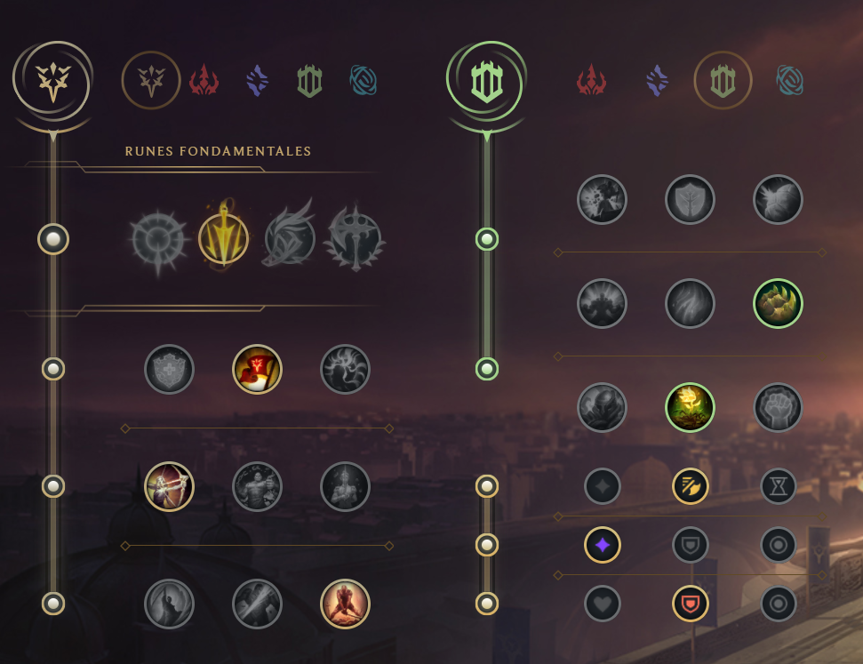 L'hémorragie infligée par le Rappel mortel permet de venir plus facilement à bout de champions tels que Dr Mundo ou Aatrox. Danse de la mort peut servir à retarder le burst adverse pour vous laisser le temps de vous soigner, tandis que l'Ange gardien peut également vous sauver d'un potentiel one-shot.