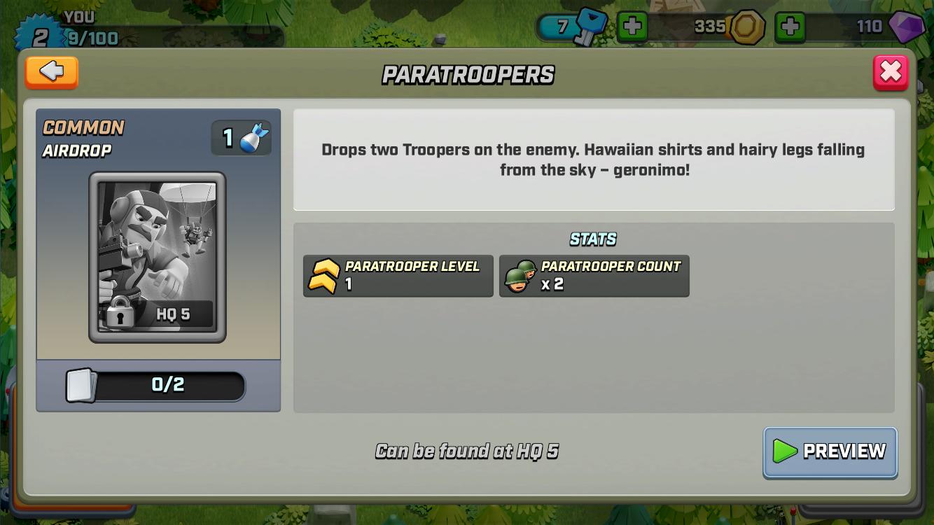 Présentation : Le Paratroopers est une unité commune de type sort, disponible lorsque l'Hôtel de ville est de niveau 5.