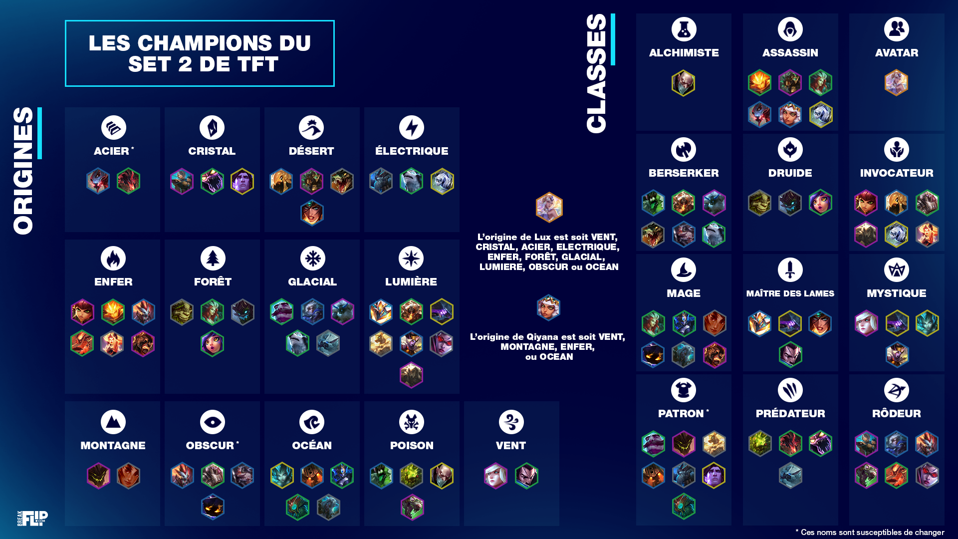 Quasiment toutes les classes et origines qui existaient dans le set 1 vont laisser place à de nouveaux traits, sauf quelques exceptions. Au programme dans ce patch, 13 origines et 12 classes sont prévues.
