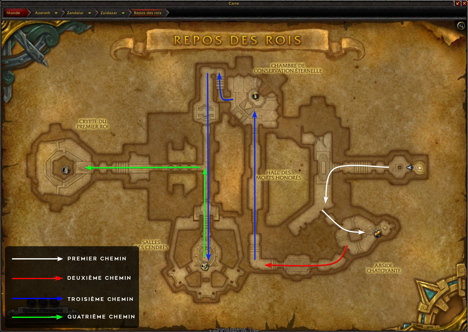 Situé à l'ouest de Zuldazar, derrière Atal'Dazar, le Repos des rois est un donjon disponible uniquement à la fin de la campagne millitaire de l'Alliance, et à la fin du scénario Zandalar pour toujours de la Horde. Il s'agira principalement de se concentrer et de ne pas oublier ses priorités. Qu'il s'agisse d'interruptions ou de monstres à éviter, on vous donne toutes les clés pour réussir !
