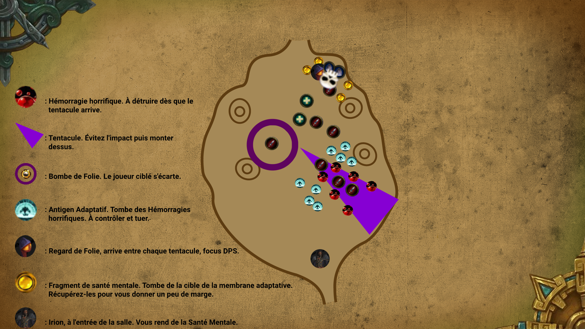 Pour gérer cet tentacule et l'invocation des antigen, envoyez vos DPS sur la tentacule pour tuer les Horrific Hemorrhage. Les joueurs au corps à corps doivent monter sur le tentacule pour tuer le plus rapidement possible des Horrific Hemorrhage. Les joueurs à distance ayant des Horrific Hemorrhage à portée peuvent aider mais il faut aussi ramener et contrôler rapidement tous les antigen puis utiliser des sorts de zones pour les faire disparaître. Les Antigen sont la priorité après les Horrific Hemorrahge. Lorsque tous les Horrific Hemorrhage sont tué, le tentacule se retire et la Fureur subit des dégâts correspondant à 1,25% de ses points de vies totaux pour chaque Horrific Hemorrhage tués.